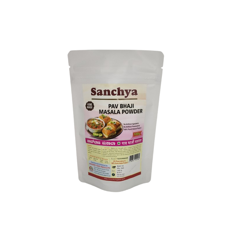 Homemade Pav Bhaji Masala Powder, prepared with hygienically blended, aromatic Karavali (coastal Karnataka) good quality organic spices is definitely a must have for any pav Bhaji recipe. Add Sanchya Pav Bhaji Masala for enjoying a mouth watering snack!