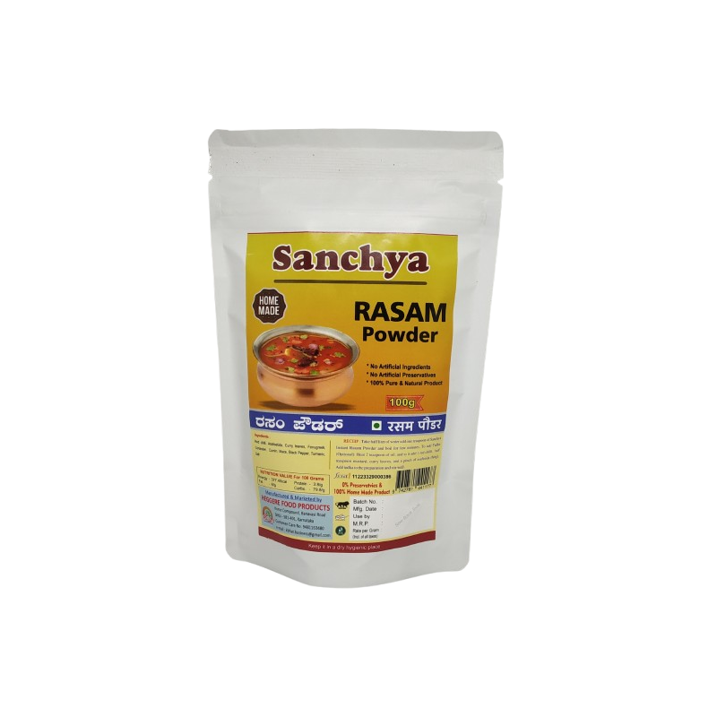 Homemade Rasam Powder, prepared with good quality Karavali (coastal Karnataka) organic spices. Used in preparation of Rasam – a tangy spiced soup like healthy drink from the South Indian cuisine - rich in protein, minerals and vitamins.