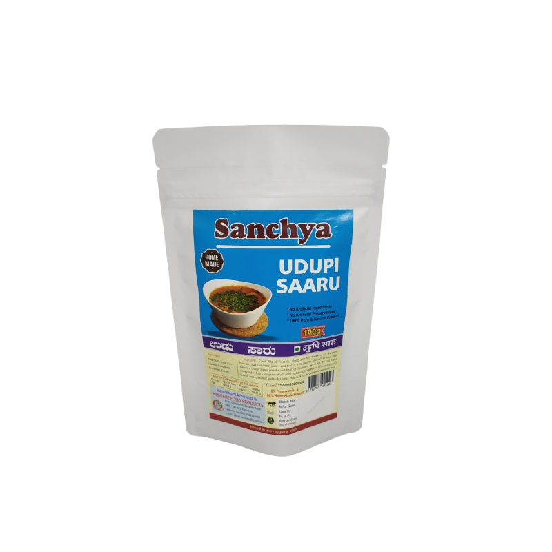 1. Cook 50g of Toor dal in half liter water along with half teaspoon of Turmeric Powder. After dal gets fully cooked, add tamarind juice to water and boil it thoroughly with jaggery and salt to taste. Add Sanchya Udupi Rasam powder and heat for 5 minutes. Serve hot.